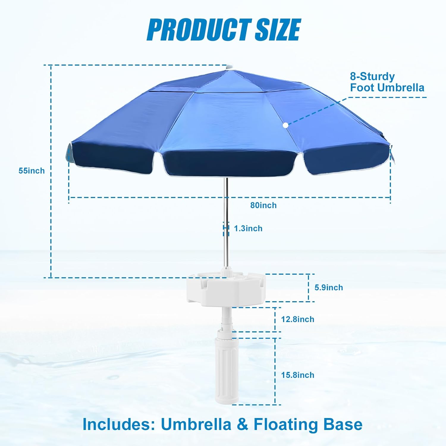 Floating Pool Umbrella,Outdoor Pool Sunshade Umbrella for Inside of Pool,Portable floating table with Drink Holders,No-Tool Setup for Swimming Pools, Beach & Lakes