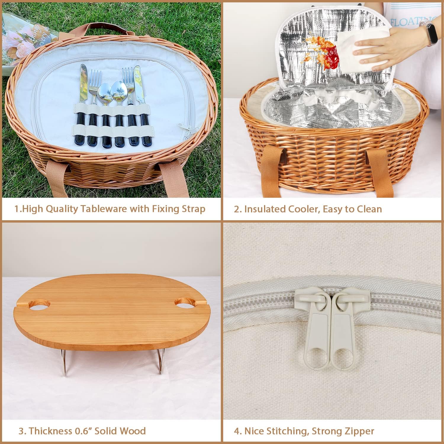 Hap Tim Wicker Picnic Basket for 2 with Mini Folding Wine Picnic Table & Larg...