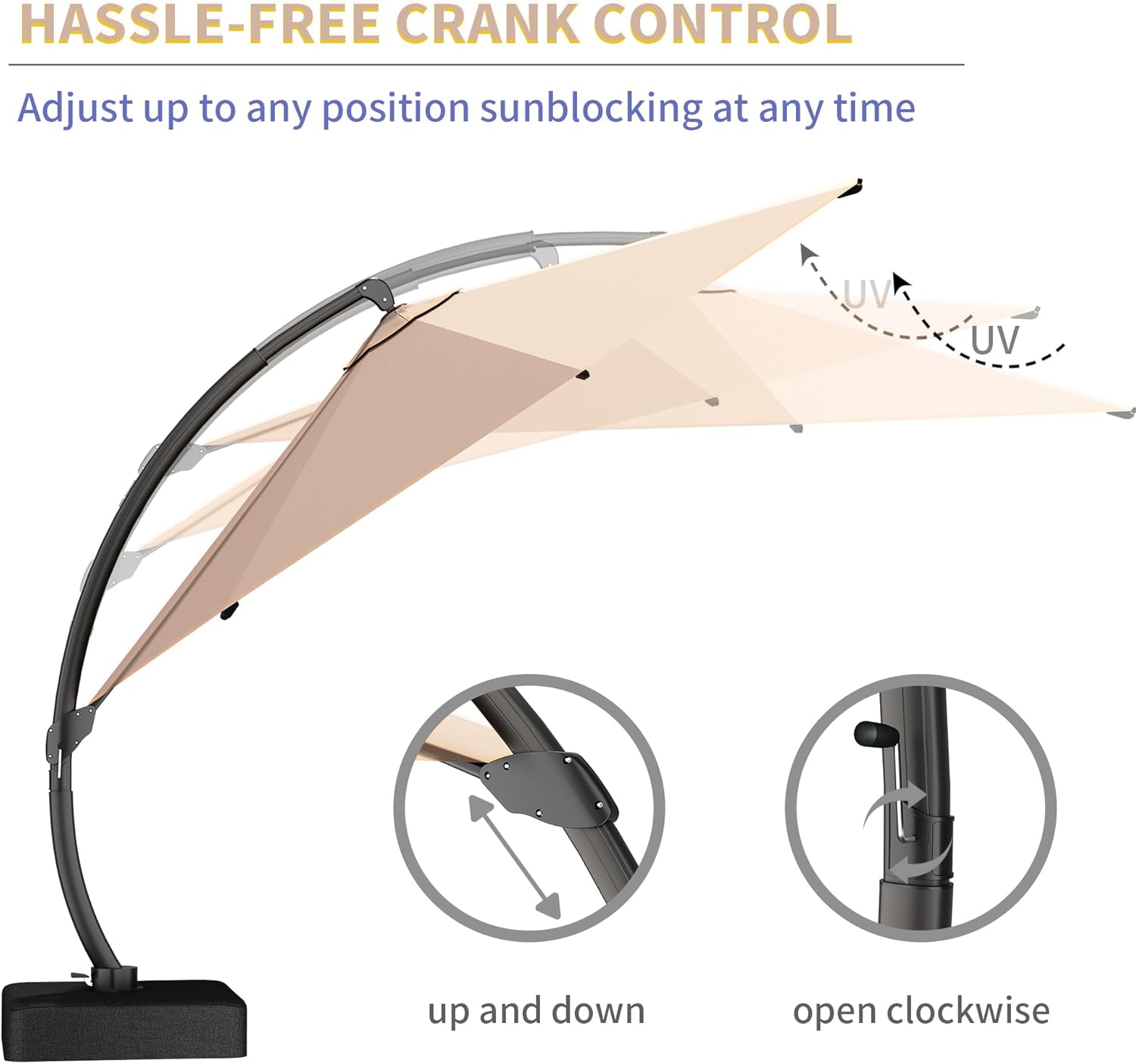 Kingdura 11ft Cantilever Patio Umbrella with Base Included, Large Round Offset Outdoor Pool Umbrella, 360° Rotation & Infinite Tilt, Heavy Duty Aluminum Frame for Deck Backyard, Beige