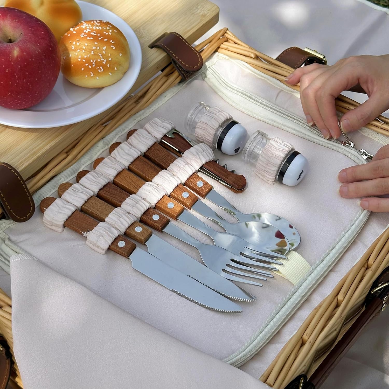 Large Wicker Picnic Basket Kit Set for 2 Adults with Blanket Family Folding Wine Table,Insulated Portable Extra Big Storage Capacity Natural Woven Rattan Canasta De Full Tablewares Camping Outdoor
