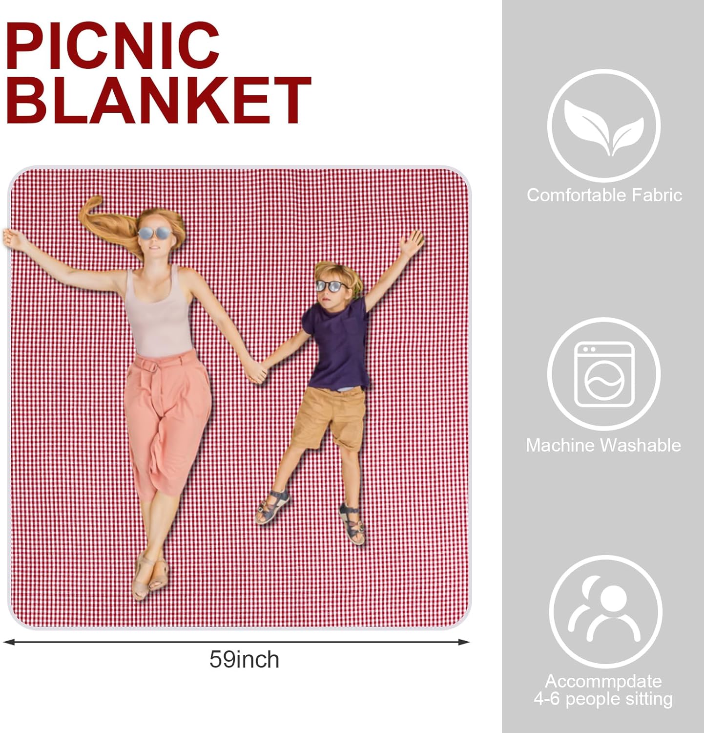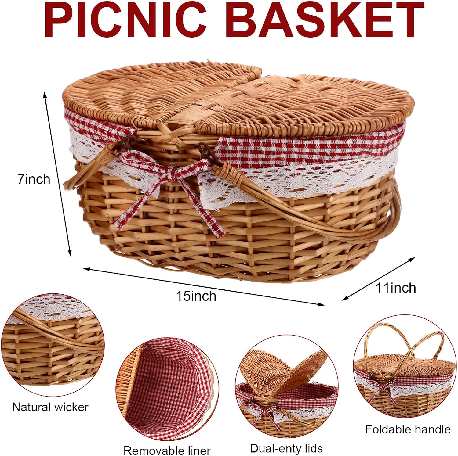 Picnic Basket with Blankets and Bamboo Plates Picnic Supplies Set Basket with Lid and Handle Wicker Picnic Basket Sturdy Woven Body with Washable Lining for Camping(Red)